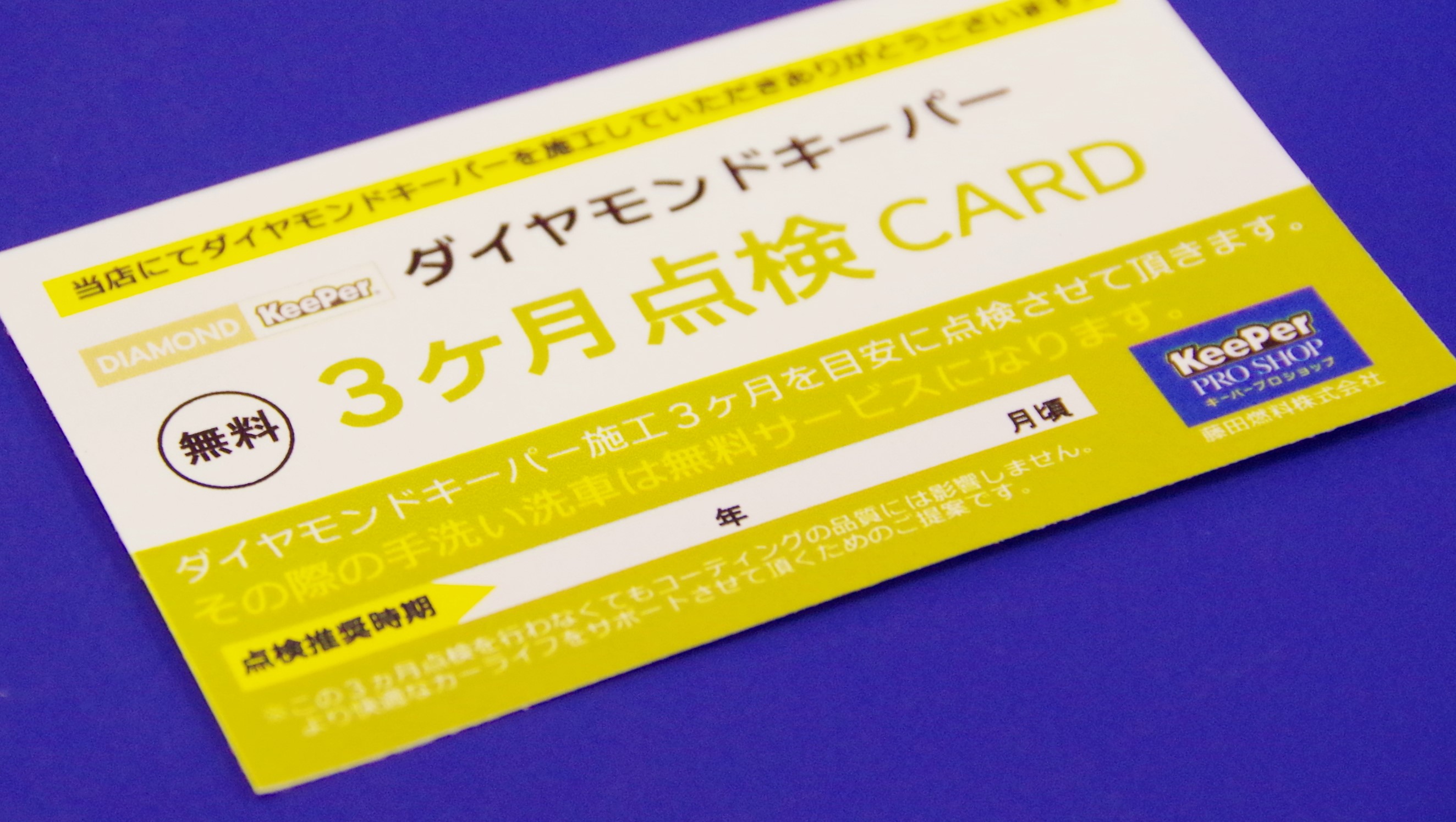 3ヶ月点検を受けた方には、「8ヶ月点検カード」をお渡ししています。